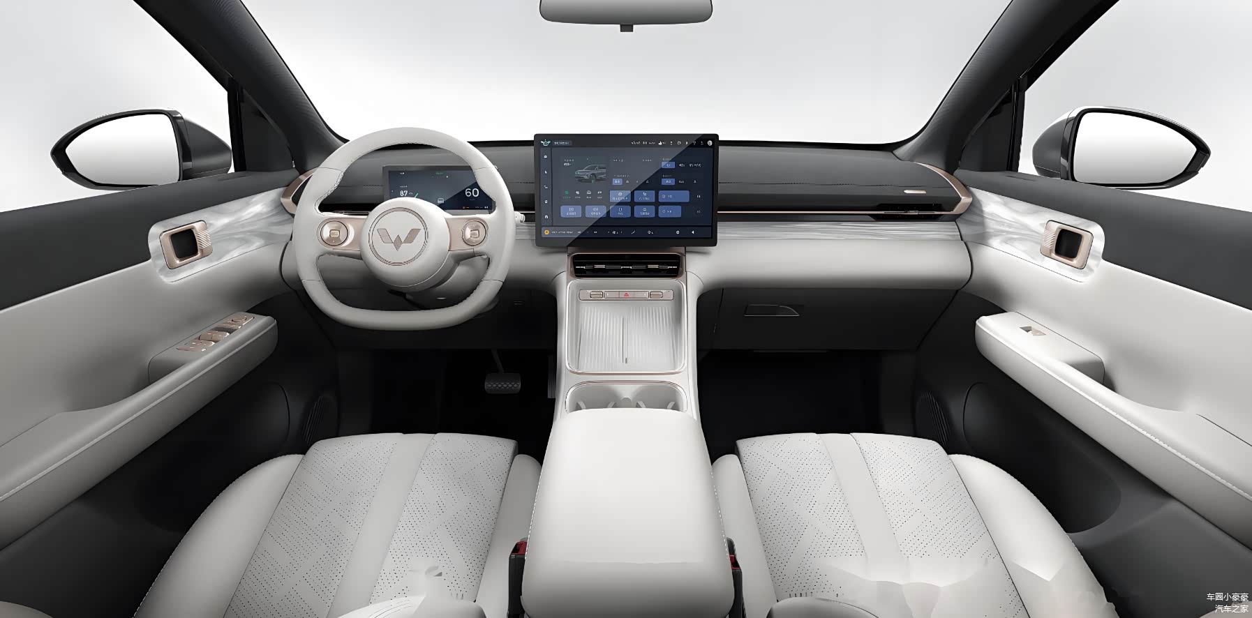 最后的最后,咱们再去对比内饰:五菱星光S采用15.6英寸中控屏+8.8英寸液晶仪表,银河E5这边,用上了15.4英寸中控屏+10.2英寸的仪表盘,两车屏幕尺寸相近,屏占比以及显示的细腻程度不相上下。