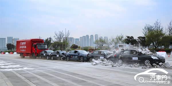 吉利星瑞也挑战了“8吨卡车极限五连撞”测试。在测试中,一辆重达8吨的无人驾驶的大货车从距离150米处加速撞击五车车队,星瑞位于车队中间,承受高于国标 5.9 倍的冲击能量。