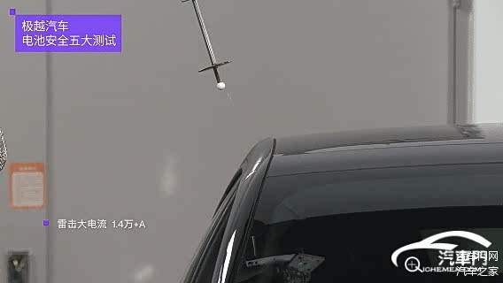 相比传统燃油车,电动智能汽车车机系统的蓝牙、卫星导航、车联网等通讯系统高度依赖电子元件和电子控制系统。而雷击产生的脉冲会干扰电子元件的正常工作,遭到电磁环境的干扰。要知道,极越07最大的买点当属智驾,为验证车辆被雷劈后是否会起火、车机能否正常工作,极越联合天津中汽中心进行了一场针对极越07的雷击直播测试。其中包括85万伏超高压脉冲电场雷击和1.4万+安培大电流电击测试。在雷击测试后,还进刮底、火烧、涉水、电磁辐射等实验。