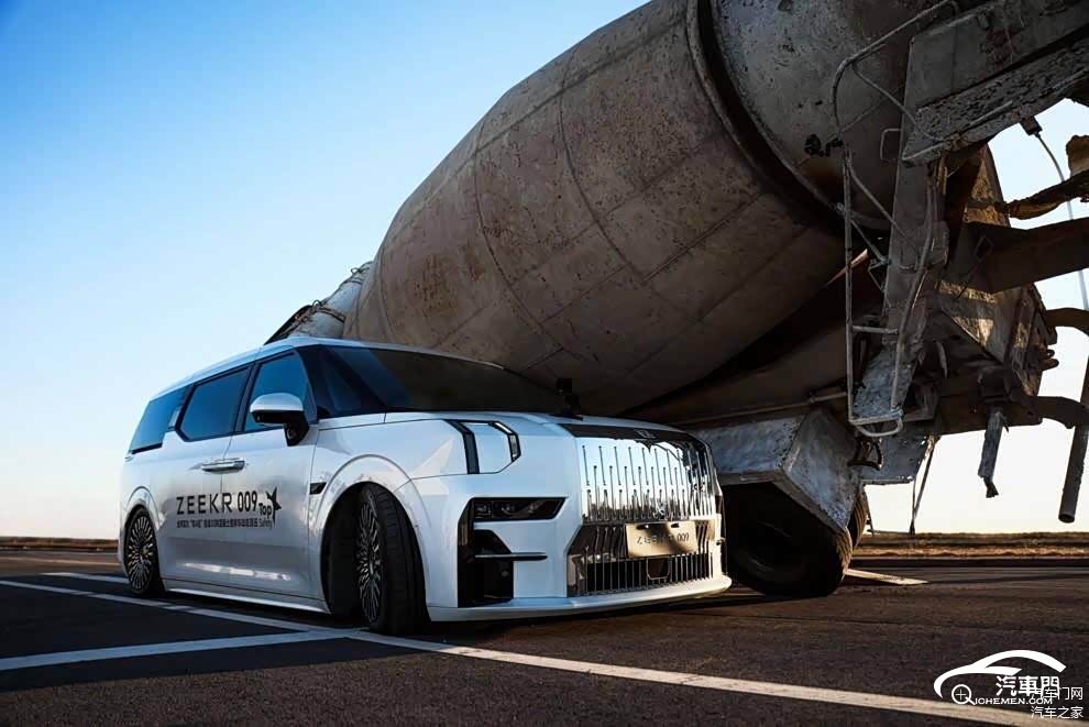 极氪 009 水泥搅拌车压顶试验