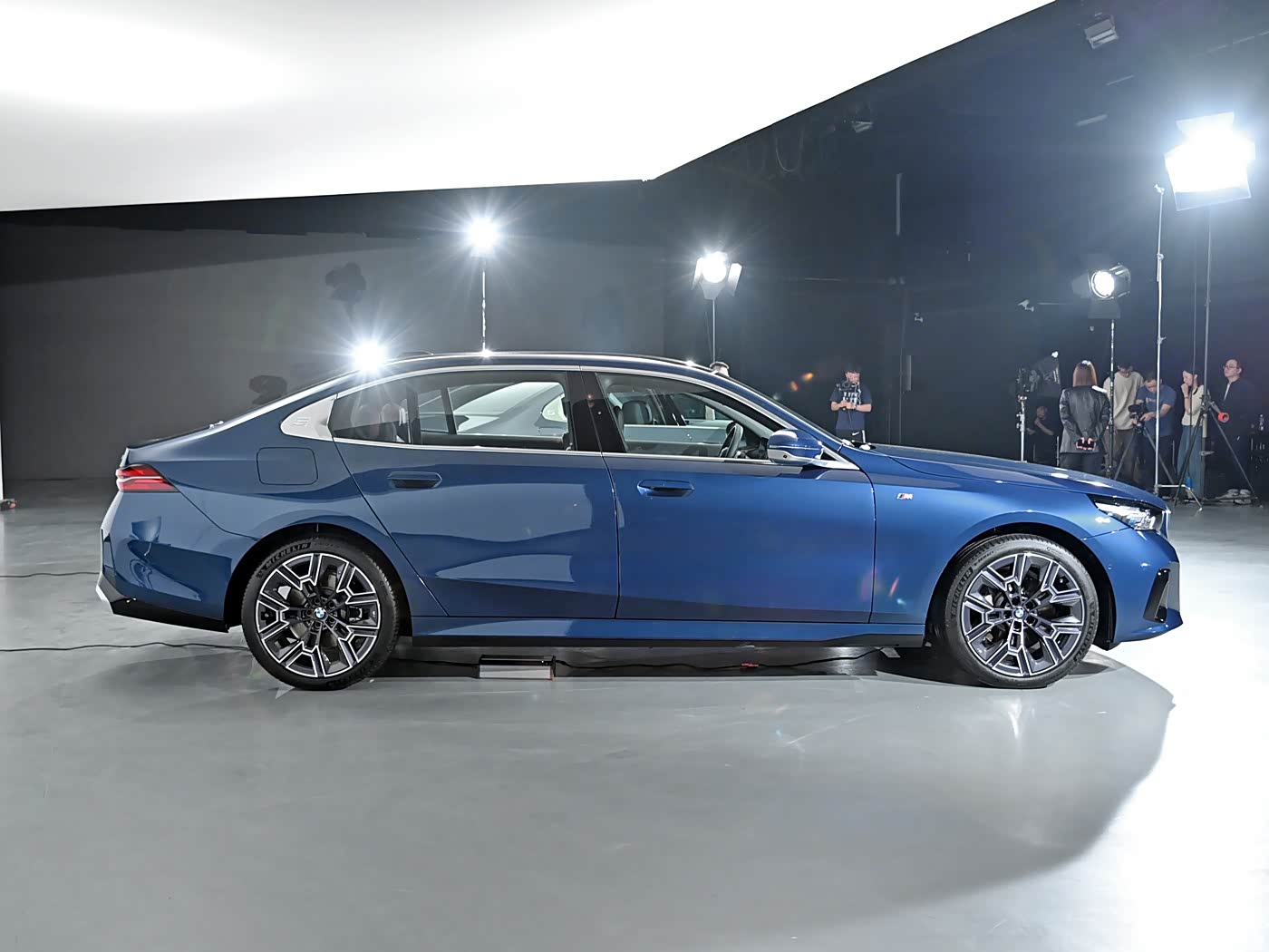 来到车身侧面,长车头短车尾的设计,让全新BMW 5系看起来有一种蓄势待发的姿态,C柱和尾厢的过度也更流畅,并且C柱还增加了独特标识数字“5”,辨识度更高,另外,还采用了半隐藏式的门把手,使用起来也更加的方便,值得一提的是,全新BMW 5系还进一步增加了车身长度,整车长度达到了5175mm,轴距为3105mm,所以整车侧面看上去更加修长。