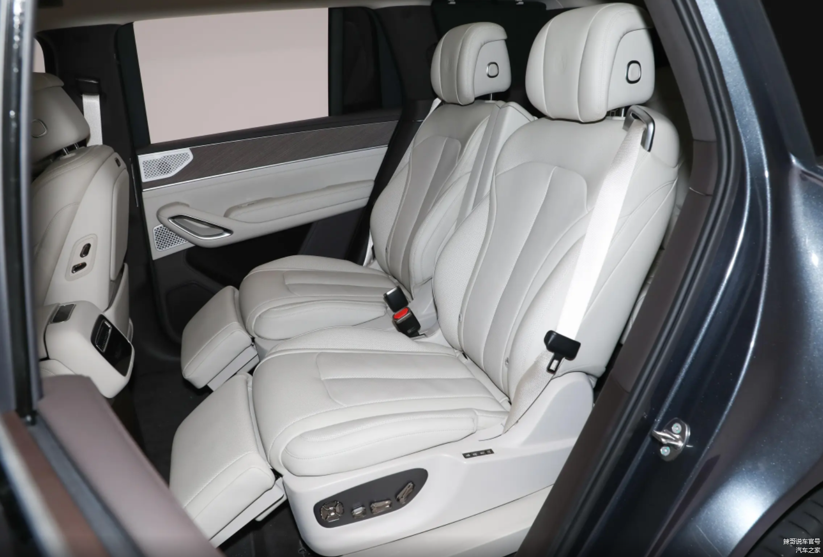 车身大了哪儿都大,腾势N9的车内空间就很大,由此也能安装大尺寸的座椅,前中后三排座椅的宽度和厚度都很出色,不仅是第一排,第二排座椅也带有多向电动调节、通风/加热/按摩功能,并且可以进行前后移动,给第三排乘员让出位置,当做MPV也可以。