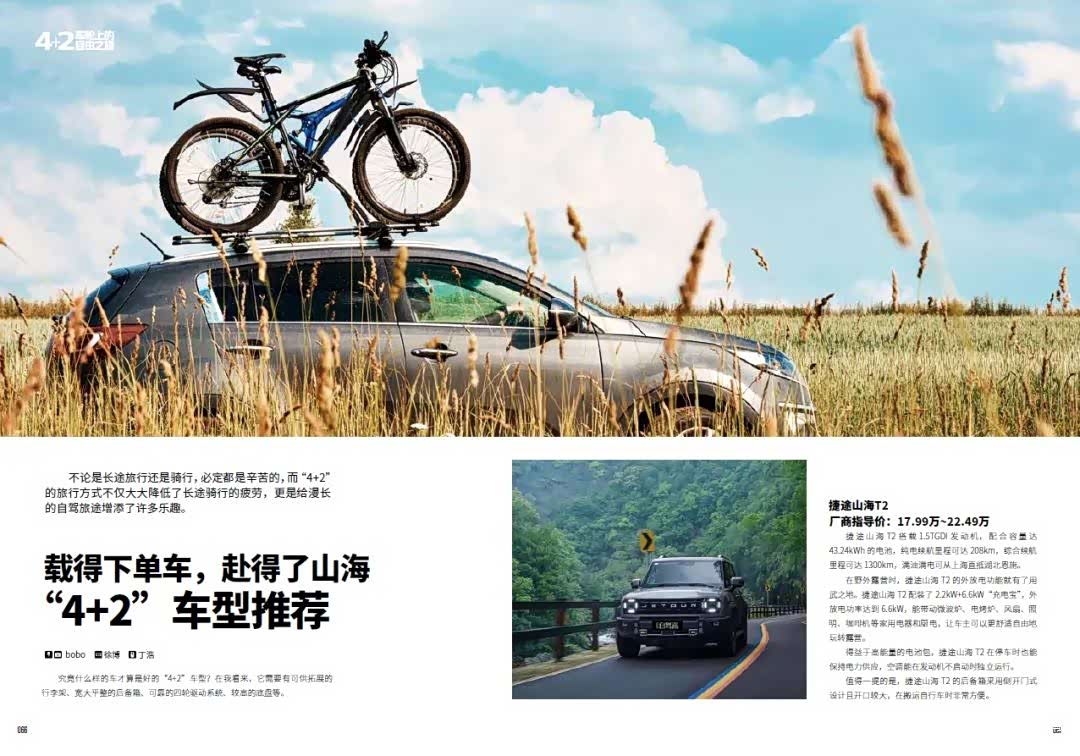 既想通过自驾游的方式远行、又想在到达目的地后休闲骑行,因此便诞生了“4+2”的自驾游经典模式,且越来越受车友们的青睐。各地文旅行业也敏锐地觉察到了这一点,会因地制宜地建设更多的自行车小径、骑行公园、山野绿道等基础设施,为4+2 出行提供更多安全及便利的条件。