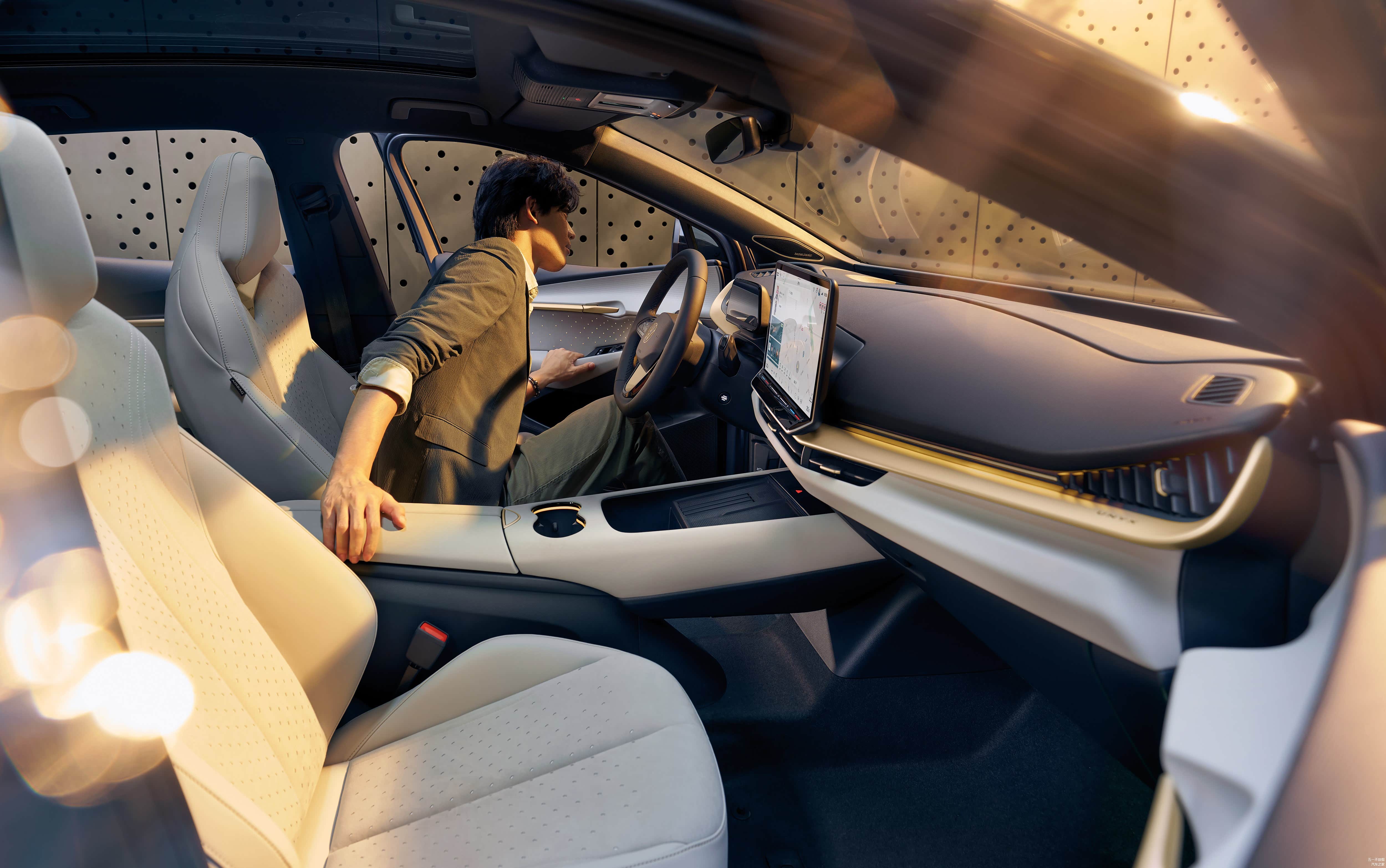 内饰方面,ID. 与众采用了 ID. 家族最新的座舱布局理念。三幅式方向盘的握持感扎实而紧致,并且在盘幅之间进行了较大幅度的镂空处理,有效保障了驾驶者的开阔视野。5.3 英寸液晶仪表显示清晰明了,与悬浮式 15 英寸中控屏相互配合,2K 显示屏呈现出清爽简约的桌面 UI 设计,操作步骤得以简化,交互流畅性表现优异。全液晶仪表盘还能依据驾驶模式的不同而切换风格,其 UI 设计充满科技感与未来感。运动型座椅的支撑性与包裹性极佳,即使在长途驾驶过程中也能有效缓解驾驶者的疲劳感。内饰细节之处,如精致的缝线、淡金色金属饰条的巧妙运用,共同营造出一种高雅而温馨的驾乘氛围。