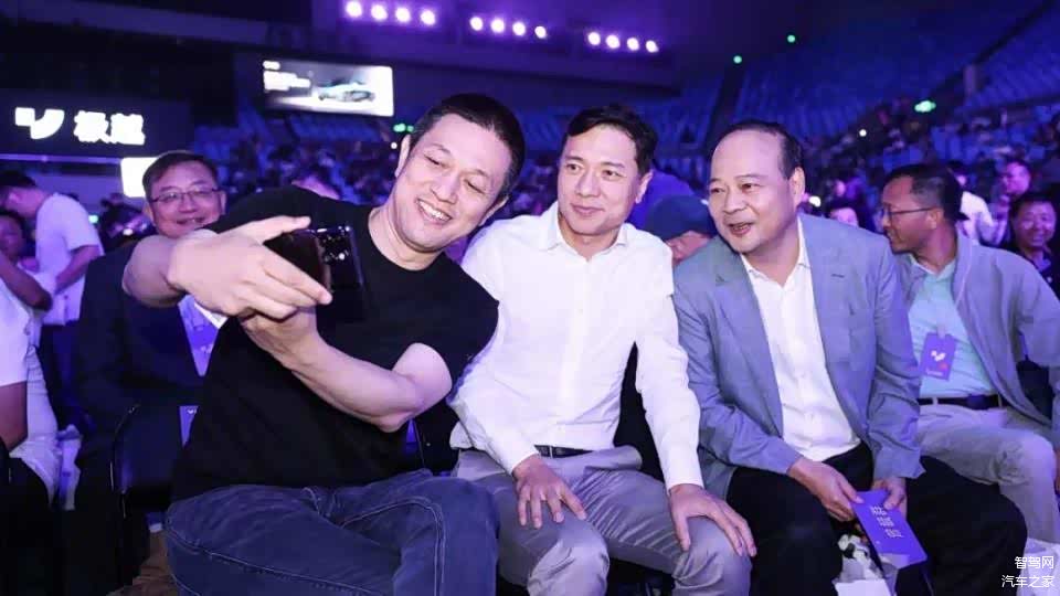 两相对比,让人惊讶的一幕发生了今年9月10日极越07上市发布会。这是极越成立迄今规模最大的一场发布会,在07发布现场的贵宾室内,夏一平与百度集团副总裁、智能驾驶事业群组(IDG)负责人王云鹏,以「看上去都是主家」的身份欢迎蔚来董事长李斌、宁德时代董事长曾毓群,以及李彦宏本人。发布会开始前段,台下的李李曾三人的合影还一度在媒体群刷屏。