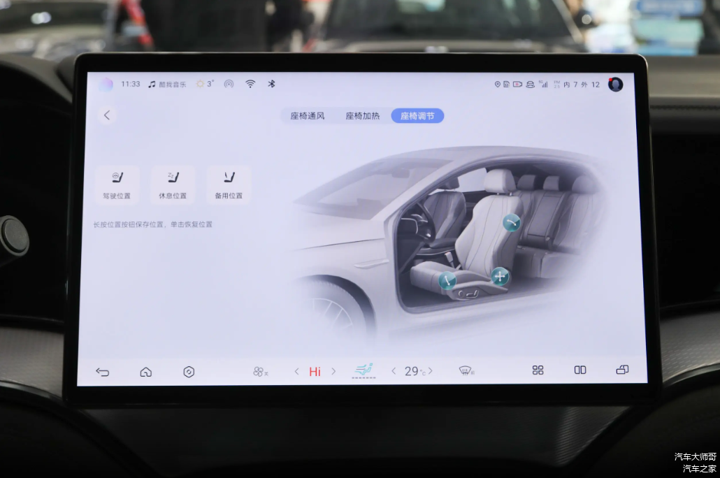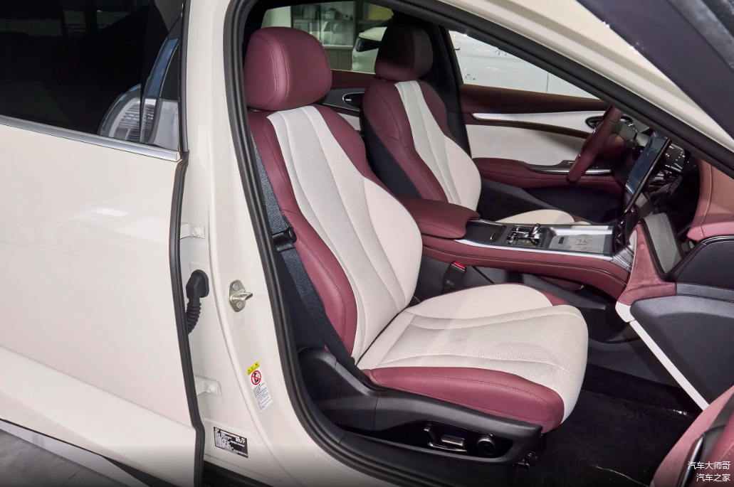 座椅方面:比亚迪海豹07DM-i的座椅使用了更注重舒适的环抱式座椅设计,造型宽大,而且采用了双拼色设计配合立体缝线。同时,座椅的填充软硬适中,可以兼顾出色的包裹感和支撑性。配置方面,主副驾均搭载多向电动调节,座椅加热/通风、电动座椅记忆功能,满足日常使用舒适性没问题。