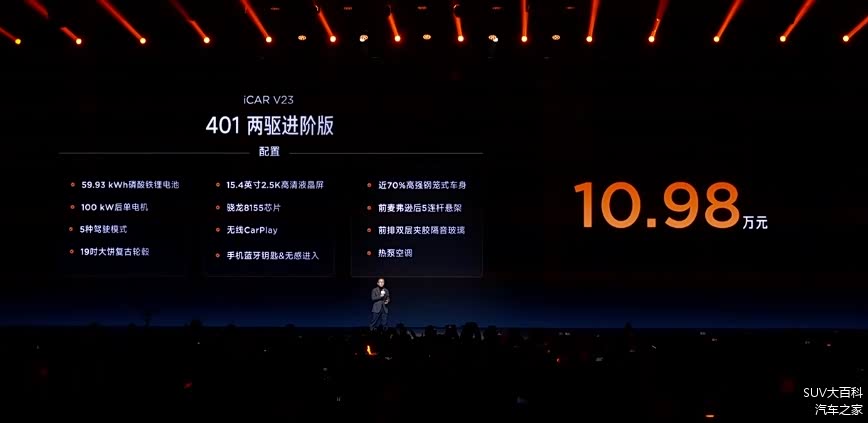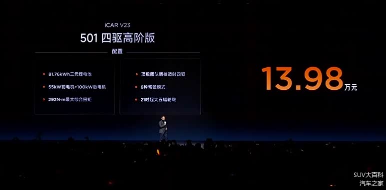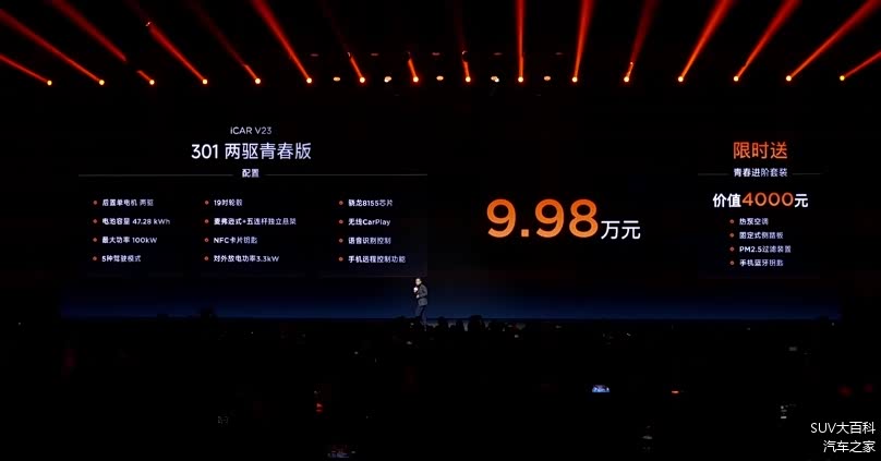 今晚,奇瑞方盒子纯电动SUV车型iCAR V23正式上市,共推出三款配置车型,售价区间9.98-13.98万元。