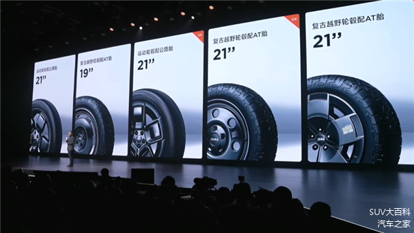 其长宽高分别为4220/1915/1845mm,轴距2730mm,接近角43°,离去角41°,最小离地间隙206/212mm(前两驱版、后四驱版),并提供19英寸和21英寸两种规格轮圈。