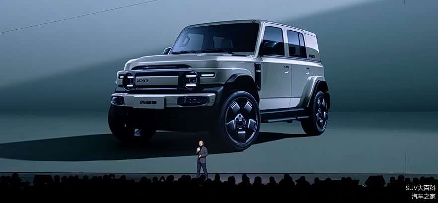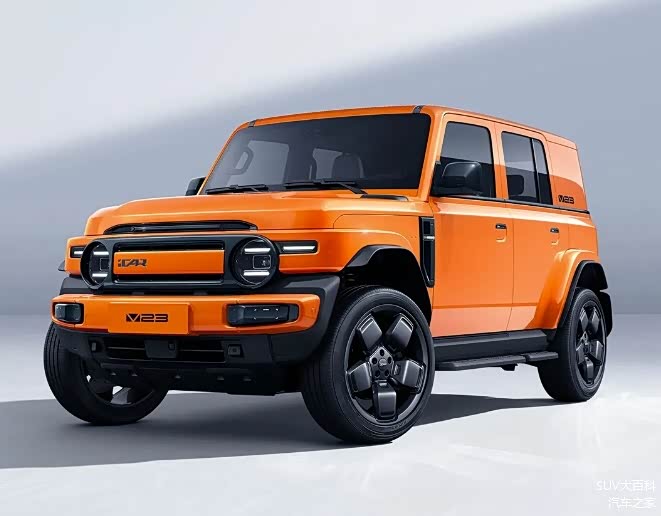 和iCAR 03类似,这款车也采用了经典的方盒子造型,拥有非常复古的圆形大灯,还配有非常敦厚的保险杠、方正的机舱盖、外突式轮眉,并拥有毫米波雷达,且配有透明防护罩,整体像是在致敬BJ212,但更具赛博朋克感。