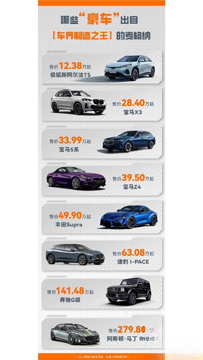 极狐新阿尔法T5由北汽极狐联手麦格纳共同打造,而麦格纳在造车领域早已声名远播,拥有超过120年的豪华品牌整车制造经验,拥有世界级卓越制造体系。因此新阿尔法T5在车辆品质方面有着得天独厚的先天优势。很多豪华车型如宝马5系、捷豹 I-PACE、奔驰G级、阿斯顿·马丁 Rapide等都出自于此。依托先进的制造工艺和严格的质量控制,极狐新阿尔法T5在品质、效率和安全性方面均达到了同级别中的领先水平,为消费者提供了可靠的保障。