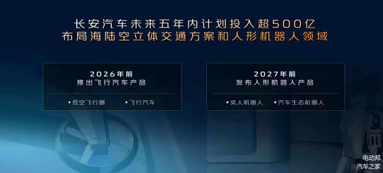 此外,在刚刚结束的2024广州车展上,长安汽车同样公布了相关领域的具体计划:『在5年内投入超500亿元,2026年前推出长安飞行汽车产品,2027年前发布人形机器人产品,加速向智能低碳出行科技公司转型。』