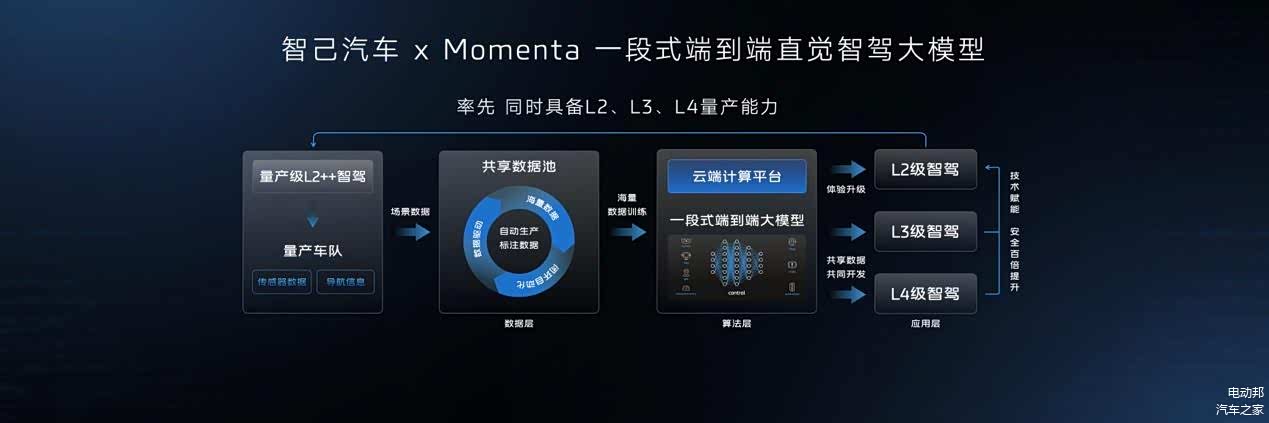 反观行业中其他的车企,还是会选择更『渐进』的合作方式。比如,此前宣布『成为全国首个同时具备L2、L3、L4智能驾驶量产能力』的智己汽车,其与Momenta打造的「一段式端到端大模型」,在智驾硬件上选择了多平台适配,基于Xavier/Orin高低算力双平台,单Orin芯片和单激光雷达,同样可覆盖城市场景及无图NOA方案。此外,该方案也将兼容L2级至L4级智驾。
