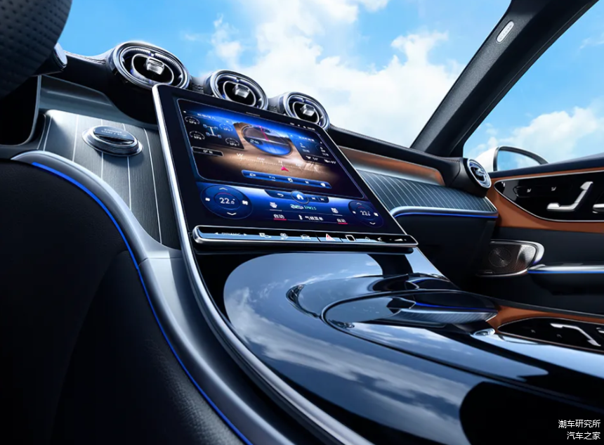 内饰上提供多项中国专属配置,前排和第二排座椅提供源自迈巴赫的头枕,第二排座椅座垫加长 35mm、加厚 10mm,后排中央扶手还配备氛围灯、双 USB Type-C 接口等。车辆还配备四区空调、64 色环境氛围灯、Burmester 3D 环绕立体声音响系统、香氛系统、隔音隔热声学玻璃,并提供 10 种主题的畅心醒神功能。车机标配高通 8295 智能座舱芯片,搭载第三代 MBUX 智能人机交互系统,支持全场景免唤醒语音交互,提升驾乘体验。
