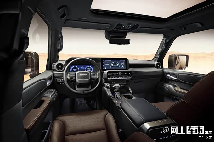 据了解,丰田2025款普拉多VX-L车型,配备了新的20寸合金轮毂、可调全景天窗;内饰部分则提供两种颜色的皮革内饰、加热和通风后排座椅、数字后视镜、10.6英寸平视显示器和JBL高级音响系统等。