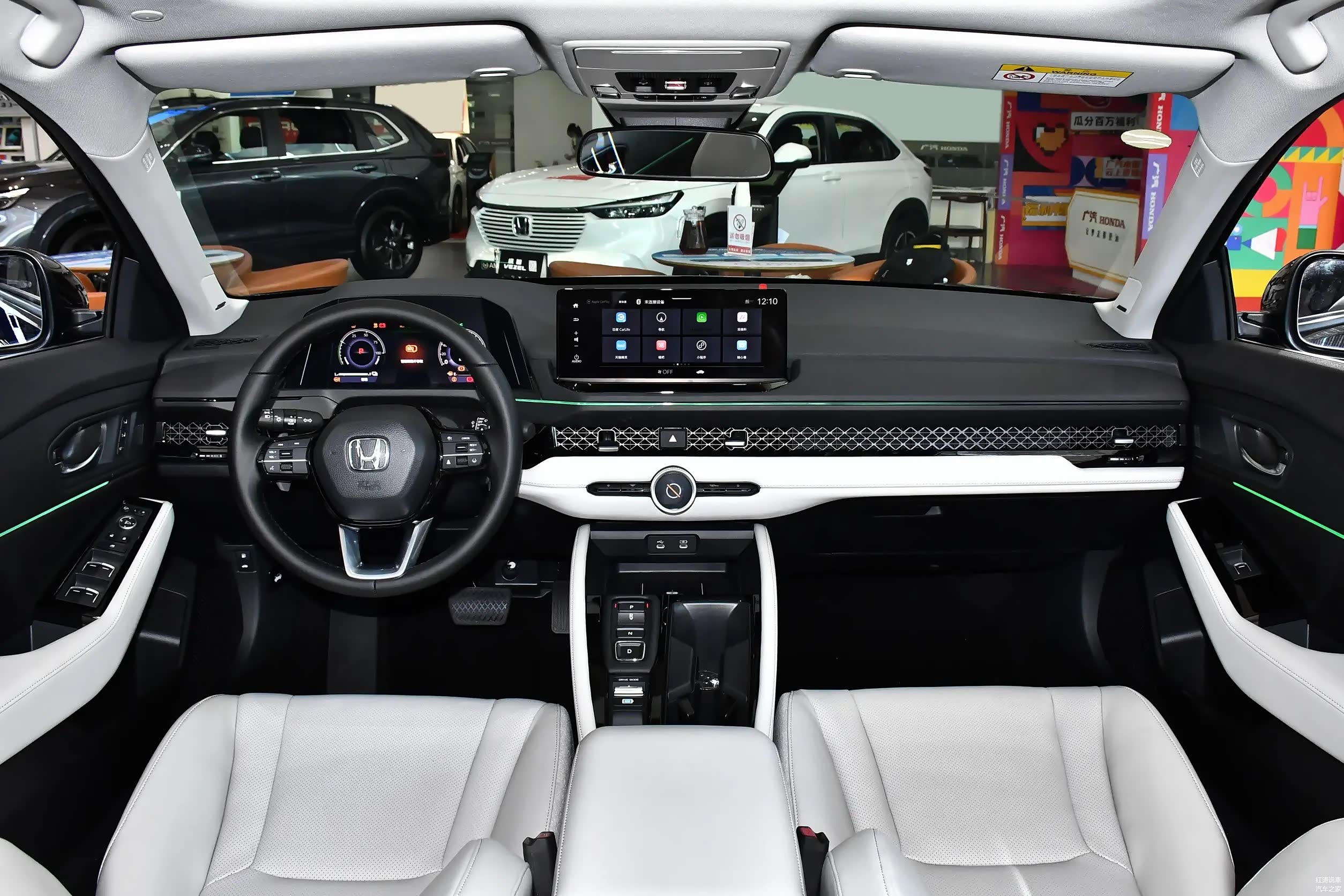e:PHEV 尊贵版配备了10.2英寸液晶仪表、HUD抬头数字显示和12.3英寸中控屏,能够显示丰富的车辆信息和娱乐信息,搭载了Honda Connect 4.0车载智能系统,支持CarPlay和CarLife,将手机上的APP互联和映射到中控屏上,使用起来更直观,支持联网、OTA升级、手机APP远程控制,语音可控制多媒体系统、导航、电话、天窗、车窗、空调的开启和关闭,此外还拥有无钥匙进入和启动、远程启动、雨量感应式雨刷、自动空调、车内PM2.5过滤装置等。