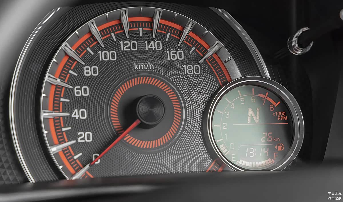 内饰部分,中控台造型很简单立体,使用了内嵌式仪表盘,其中圆形的转速表中还带有行车电脑显示屏,造型很卡通可爱。三幅式的方向盘带有多功能按键,新车还提供了中控屏。