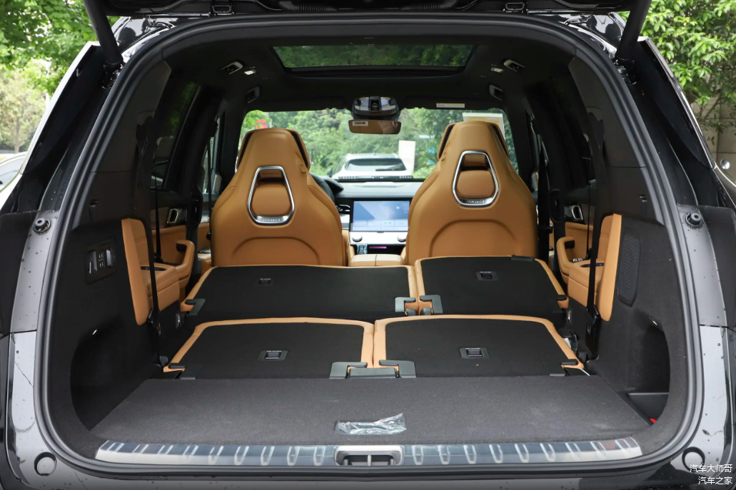 后备厢方面:领克09的后备厢平坦且规则,收起第三排座椅后,行李厢地板能够保持纯平的状态,而且第二排座椅也可以进行放倒,这样拓展了后备厢的空间,容纳三口或四口之家长途出行的行李和物品是没有问题的。