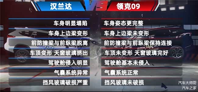 安全性方面:车辆的安全性一直以来都是我们消费者最关心的部分之一,而基于吉利SPA架构打造的领克09的安全性也是毋庸置疑。此前,领克09EMP又开始“约架”丰田汉兰达,双方在专门的测试环境下进行正面100%对撞,各自加速到70公里每小时,相对时速来了140公里。此次碰撞测试中,领克09车身姿态更完整、车身上边梁未变形、前防撞梁与前纵梁保持连接、车顶未变形、驾驶舱基本未侵入。