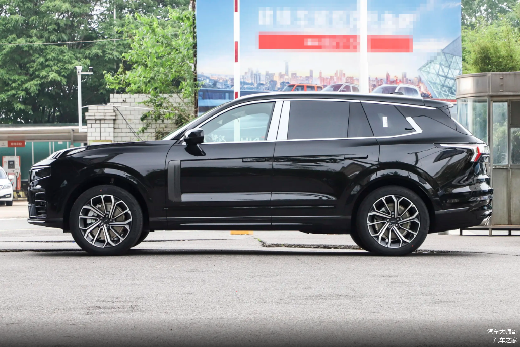 车身侧面造型流畅且舒展,悬浮式车顶增加了整体设计感,而得益于较长的前悬以及前轮相对防火墙的位置,领克09的车头非常修长,算是营造了一种豪华SUV的视觉感,而领克09装配了电动弹出式拉手,视觉效果更有科技感,并配备了20英寸的Y字型轮圈很有设计感,磨砂灰的涂层令质感更上一层楼。