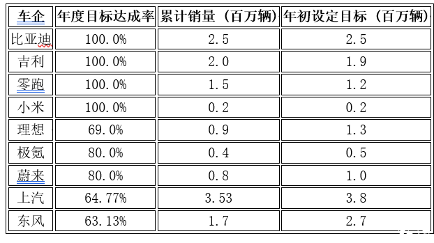 然而,在充满竞争的市场中,车企们的目标完成情况却大相径庭。哪些车企已经提前达成年度销售目标?又有哪些车企还差得远,离目标还有一段距离?