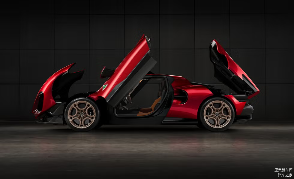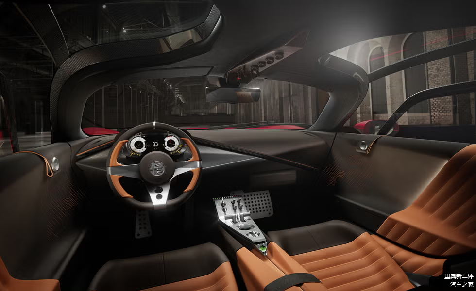 为了满足现代车主的多样化需求,33 Stradale 提供了燃油和电动两种动力选择:燃油版:搭载一台 3.0 升 V6 双涡轮增压发动机,最大功率 620 马力,配备八速双离合变速箱。这套系统让这辆超级跑车从静止加速到 100 公里/小时仅需不到 3 秒,最高时速可达 333 公里/小时。