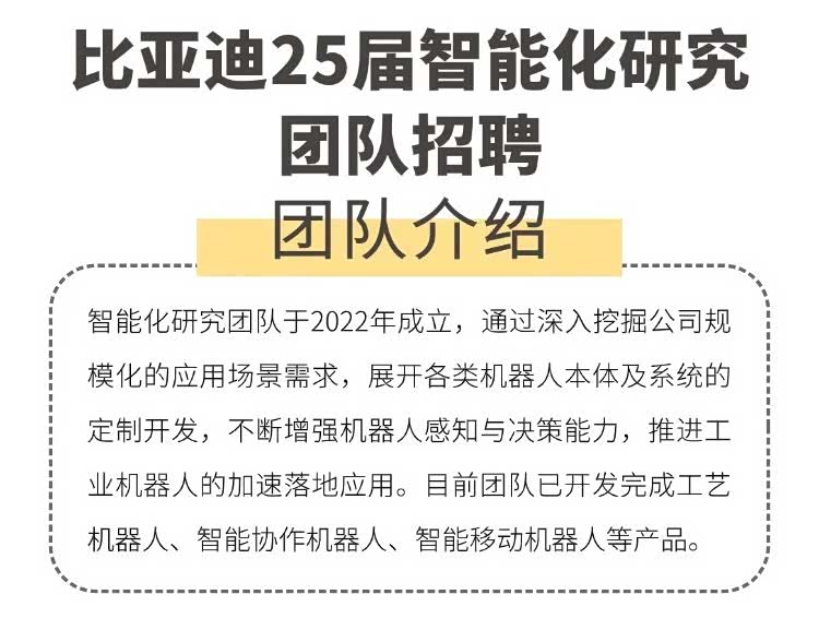 ▲ 比亚迪智能化研究团队简介。图 / 比亚迪招聘官微
