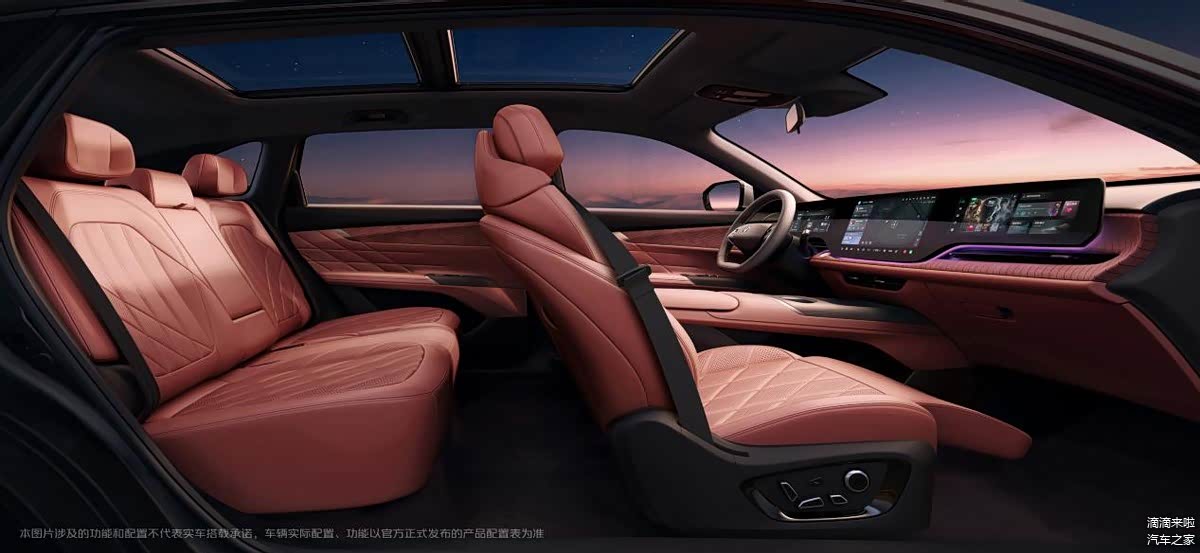 内饰方面,配备10.25英寸全液晶仪表、14.6英寸中控屏与12.3英寸副驾显示屏所组成的三连屏,副驾驶配备“女王座椅”。