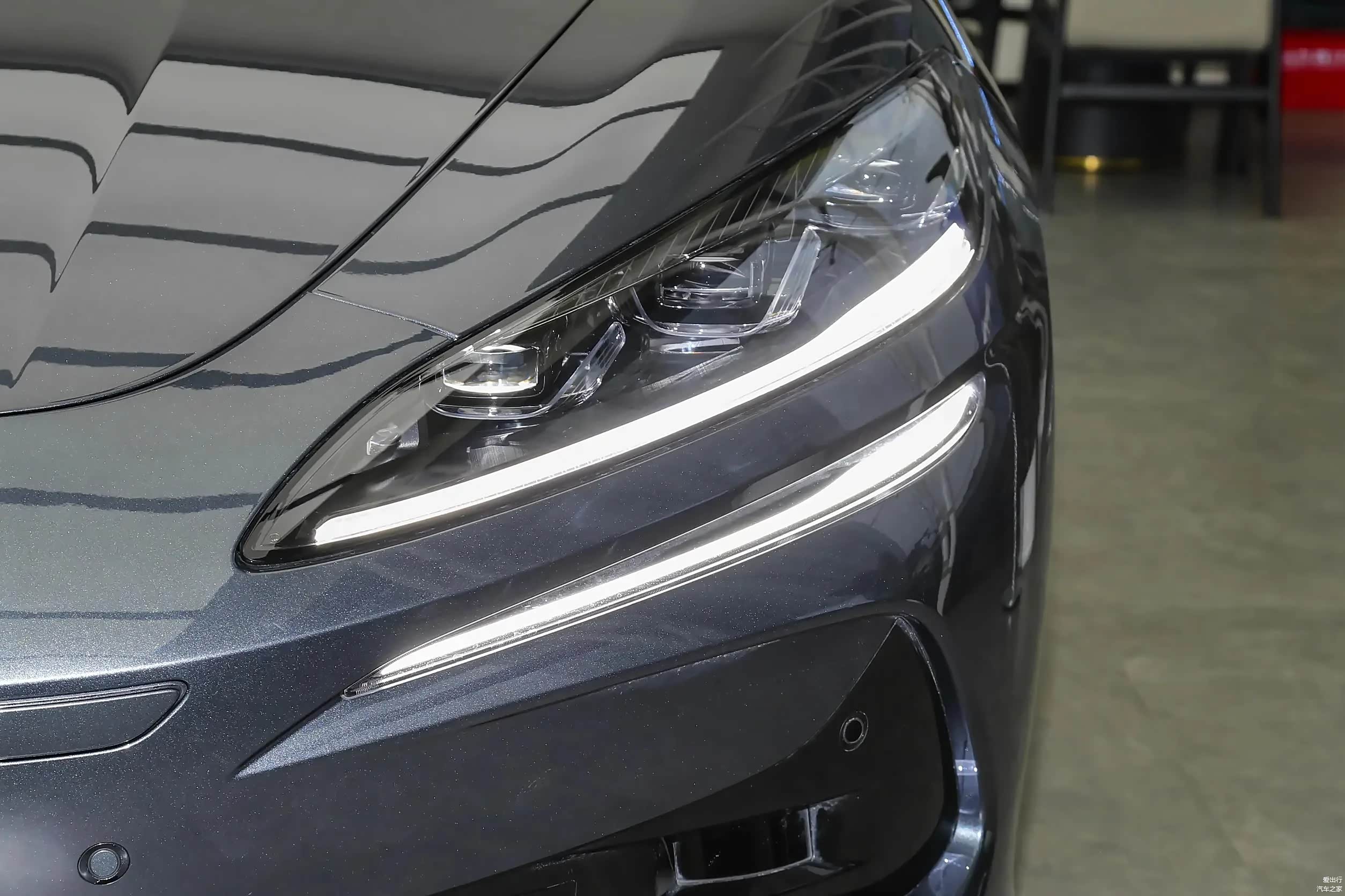 腾势Z9的外观设计,无疑是其一大亮点。这款车采用了大量跑车元素和空气动力学设计,使得整车线条流畅且充满力量感。大弧度的前机盖下潜设计,使得车头呈现出低趴的姿态,配合醒目的腾势车标Logo,以及修长的LED大灯,流露出几分犀利与动感。上下双层的LED日间行车灯是家族式设计,前包围中间的黑色网格状进气口,两侧各配备了一颗激光雷达,彰显出科技与前卫。
