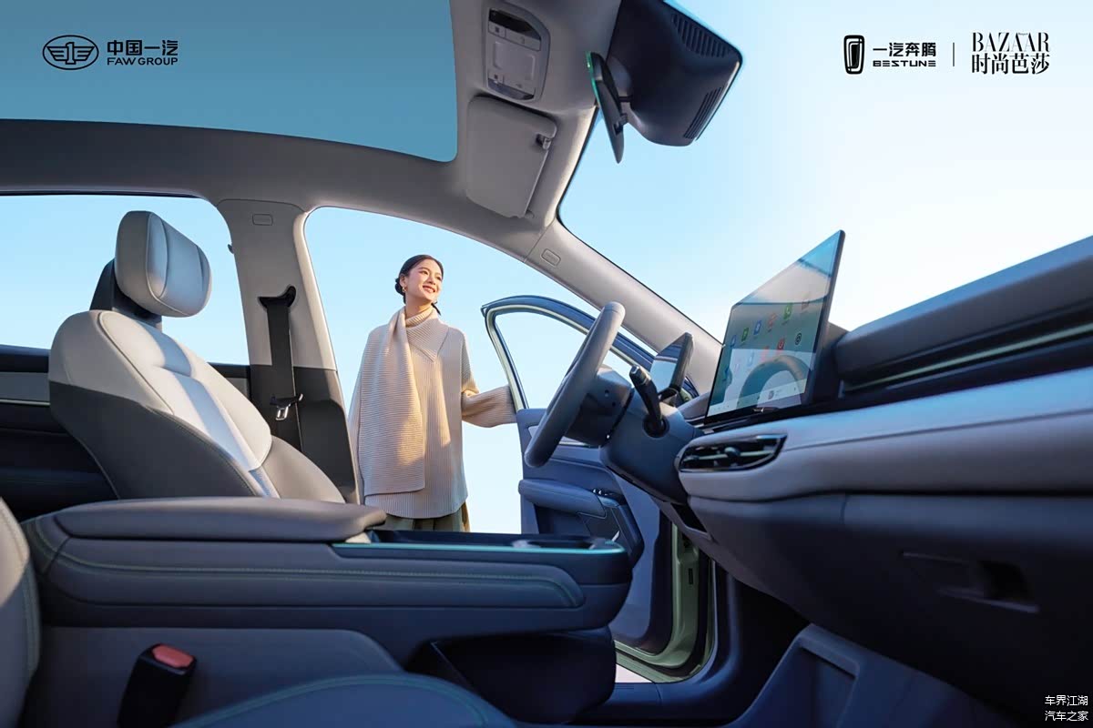 悦意03,今年11月于广州车展首发亮相,是一汽奔腾全新新能源产品家族的首款车型,它基于FME纯电平台打造,长宽高为4450mm*1860mm*1635mm,轴距2750mm。在能耗上,该车拥有同级最低能耗,百公里电耗仅11.8kWh,同级第一。续航层面,对比同级银河E5的530km,续航预计将达到550km以上。对年轻人来说,这不仅减少了充电频次,还有扎实的续航表现,更加实用。