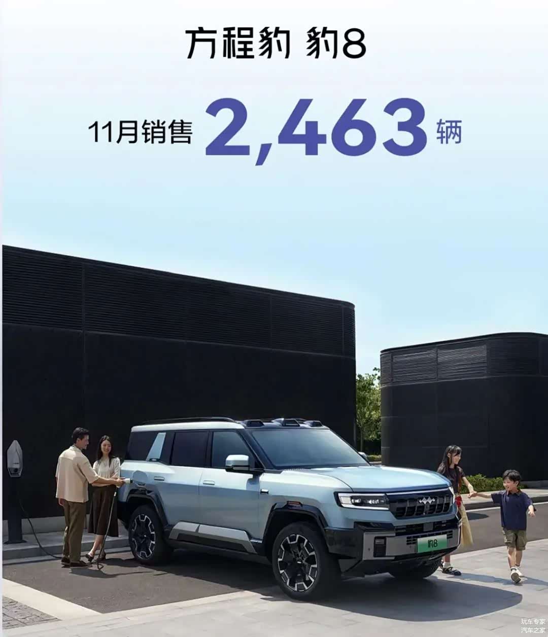 根据官方公布销量数据,11月份豹8销量为2463辆,车身尺寸长宽高分别为5195/1994/1905毫米,2920mm的轴距,作为一款接近40万元的中大型SUV,这个销量表现还是很不错的,可谓是上市即热销了。