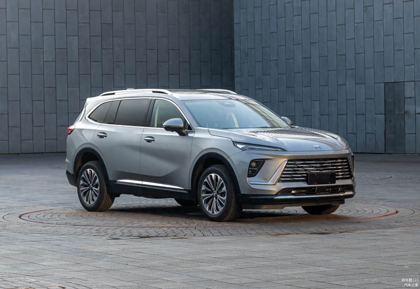 2025款别克昂科威Plus整体延续了现款车型的设计风格,前脸设计了横向格栅和分体式大灯。车身侧面提供传统式门把手和18英寸双色铝合金轮毂以及20英寸铝合金轮毂。尾部贯穿式尾灯组带有流光转向效果。