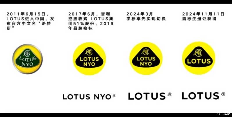 2024年3月,LOTUS 字标正式取消了NYO后缀;同年11月11日,LOTUS 新的圆标获批,LOGO中正式取消了NYO后缀。至此,LOTUS在中国迎来了全新的品牌形象。从莲花工程、到车队、到中文商标,真正完成了莲花的品牌版图,实现了吉利的超跑梦。