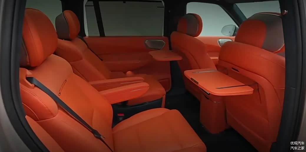 座椅部分,新车大概率是采用2+2+3的7座布局,实拍车型第二排配备了两个独立的座椅,且提供了后排小桌板。预计过道前方还会提供有带冷暖功能的车载冰箱。
