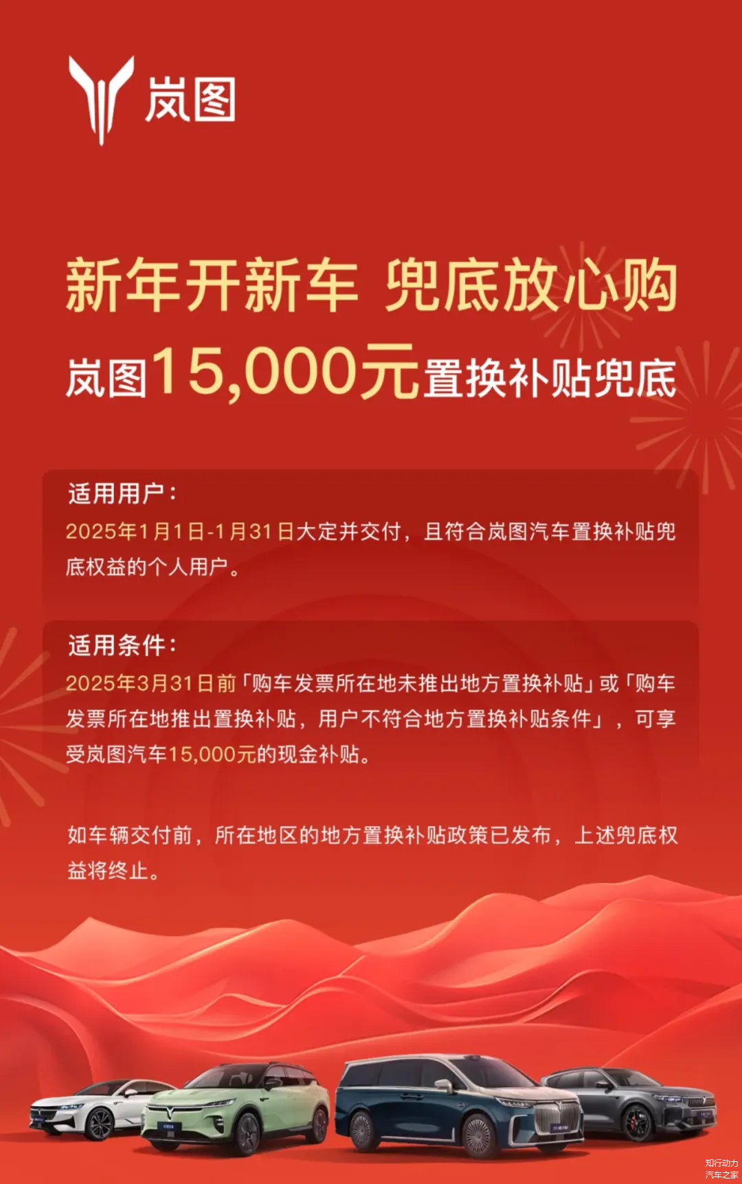 岚图汽车同样也是针对在今年3月31日前“购车发票所在地未推出地方置换补贴”或“购车发票所在地推出置换补贴,用户不符合地方置换补贴条件”,提供每辆车15000元的现金补贴。智己的补贴时间就更长一些,官方宣布在今年5月31日前“购车发票所在地未推出地方置换补贴”或“购车发票所在地推出地方置换补贴,用户购车时间不符合地方置换补贴条件”,可享受智己汽车给予的1.5万元/台现金补贴。