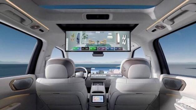 领克900的座椅配置是三排2+2+2的六人座布局,因此中间第二排座椅是两张各自可独立调整坐姿且都有各自扶手的单独座椅,而且全景天窗、车内氛围灯和吸顶式的后座冷气出风口等配备一概没少,后座还有一个30寸6K解析度的吸顶式屏幕,可通过前排扶手后方的一个小屏幕来进行操作,此外还有一个小型冰箱。