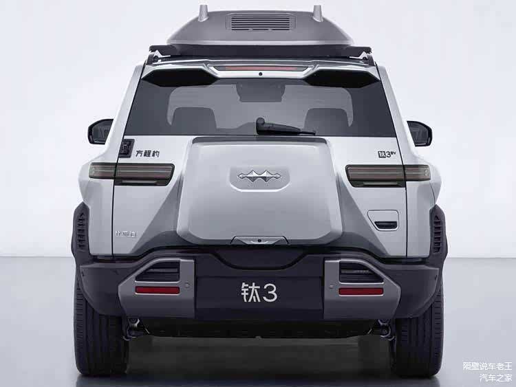 首先,咱们得说说这车的外观。方程豹钛3的外观设计基本延续了SUPER 3概念车的风格,整体看起来非常硬朗。前脸是封闭式设计,两根平行布局的贯穿式日行灯让车头看起来非常有辨识度。车身侧面用了很多平直线条,隐藏式门把手和外扩造型的轮拱让整车看起来更加简洁大气。