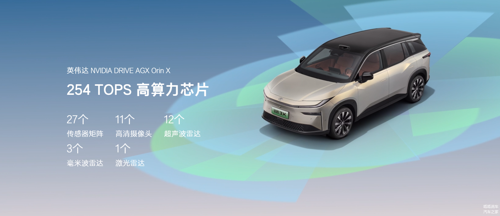 在智能驾驶方面,铂智3X搭载了由广汽丰田与Momenta共同开发的5.0端到端智驾系统,配备27个传感器,包括11个高清摄像头、12个超声波雷达、3个毫米波雷达等硬件。这套系统不仅能实现自动泊车、自动跟车等功能,还可以提供全场景的智能驾驶辅助,大幅提升了驾驶的安全性与便利性。