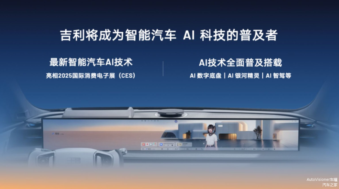 在1月7日的 CES国际消费电子展上,吉利展示了AI科技在用户端、研发端以及生态端的全面布局与应用。在AI科技的赋能下,吉利的AI数字底盘、AI银河精灵、雷神EM-i超级电混、Flyme Auto智能座舱以及高价值智驾技术,将在最新产品上广泛搭载。