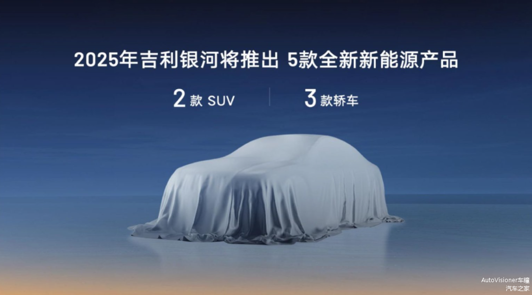 2025年,吉利银河将推出5款全新产品,其中包括2款SUV、3款轿车,每一款都将聚焦主流细分市场的核心产品定位,通过完善的产品矩阵全面冲刺新能源市场头部地位。
