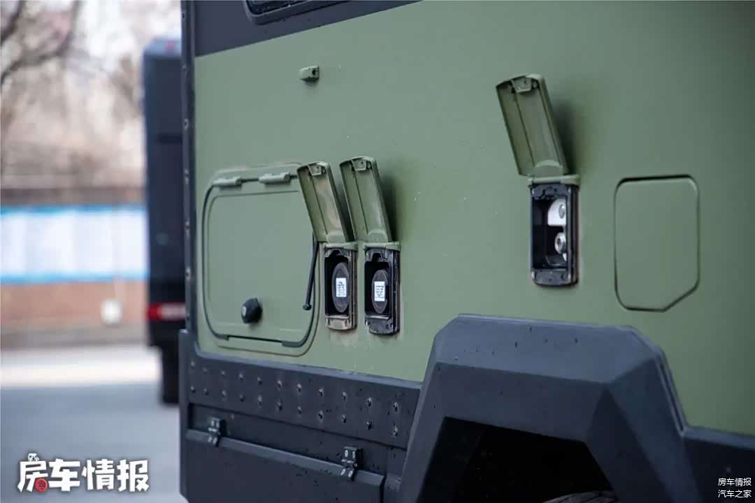 车身侧面也提供了必要的生活设备,如遮阳棚、新能源充电口、出水口、行李箱等,基本上可以满足日常使用。