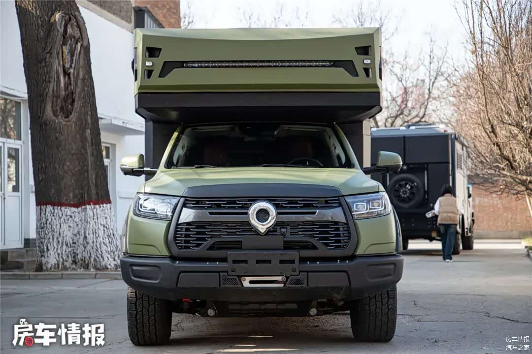 说回新车本身,这款房车基于长城炮越野版房车专用底盘打造而成,也因此从基因里就带有几分野性,而普通版长城炮房车专用底盘相比,多了很多针对越野环境下使用的装置,如车头的绞盘、AT越野胎、熏黑中网、防爆漆以及可选装的氮气减震等。