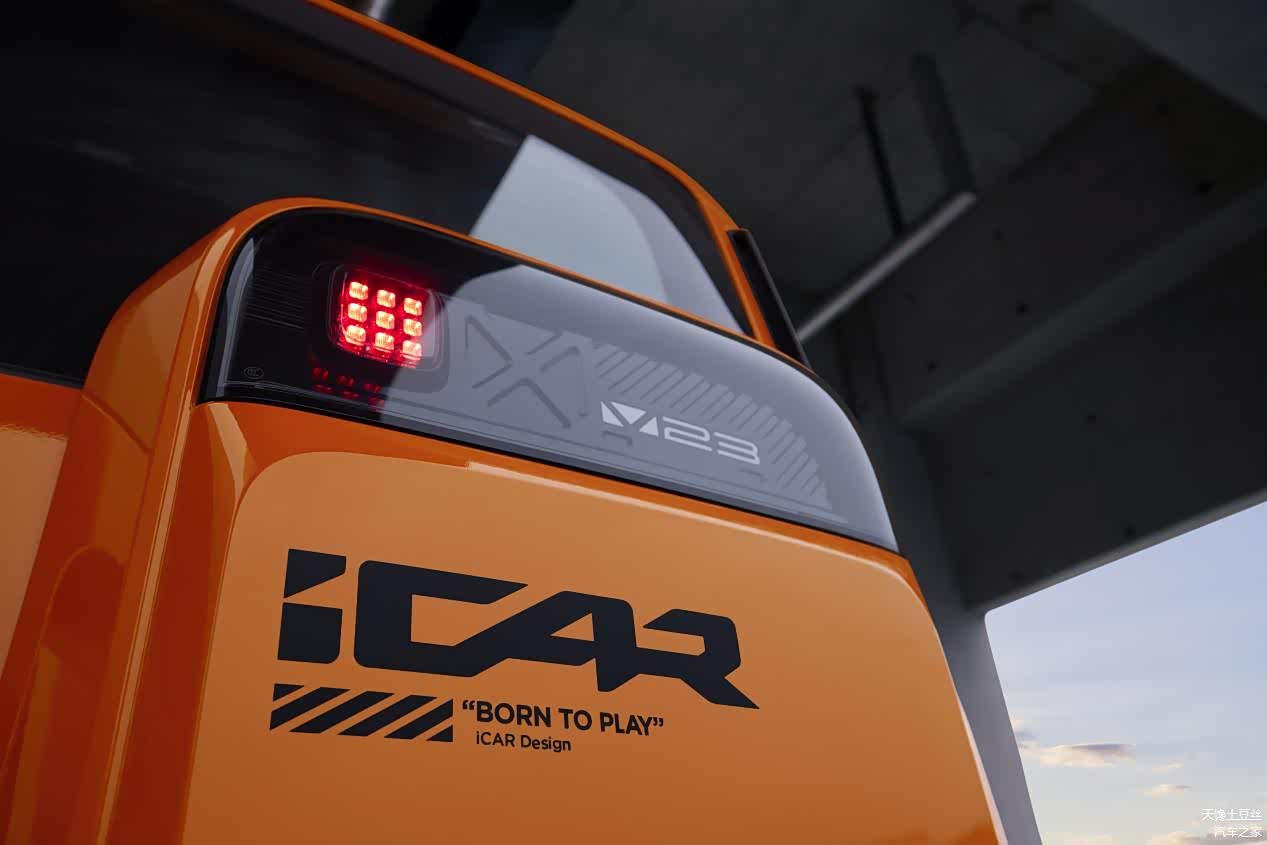 前后保险杠上外露式四角透明毫米波雷达罩、立体悬浮“小书包”及乐高模块高位刹车灯、“iCAR ”、“V23”醒目LOGO及 “BORN TO PLAY”(生而会玩)等现代风格,把经典与创新融合的设计相结合,V23既“复古经典”又“科技赛博”,在致敬经典的同时,还彰显了自己的个性和灵魂,有自己的东西,可玩性很强,是当代青年的理想坐驾。