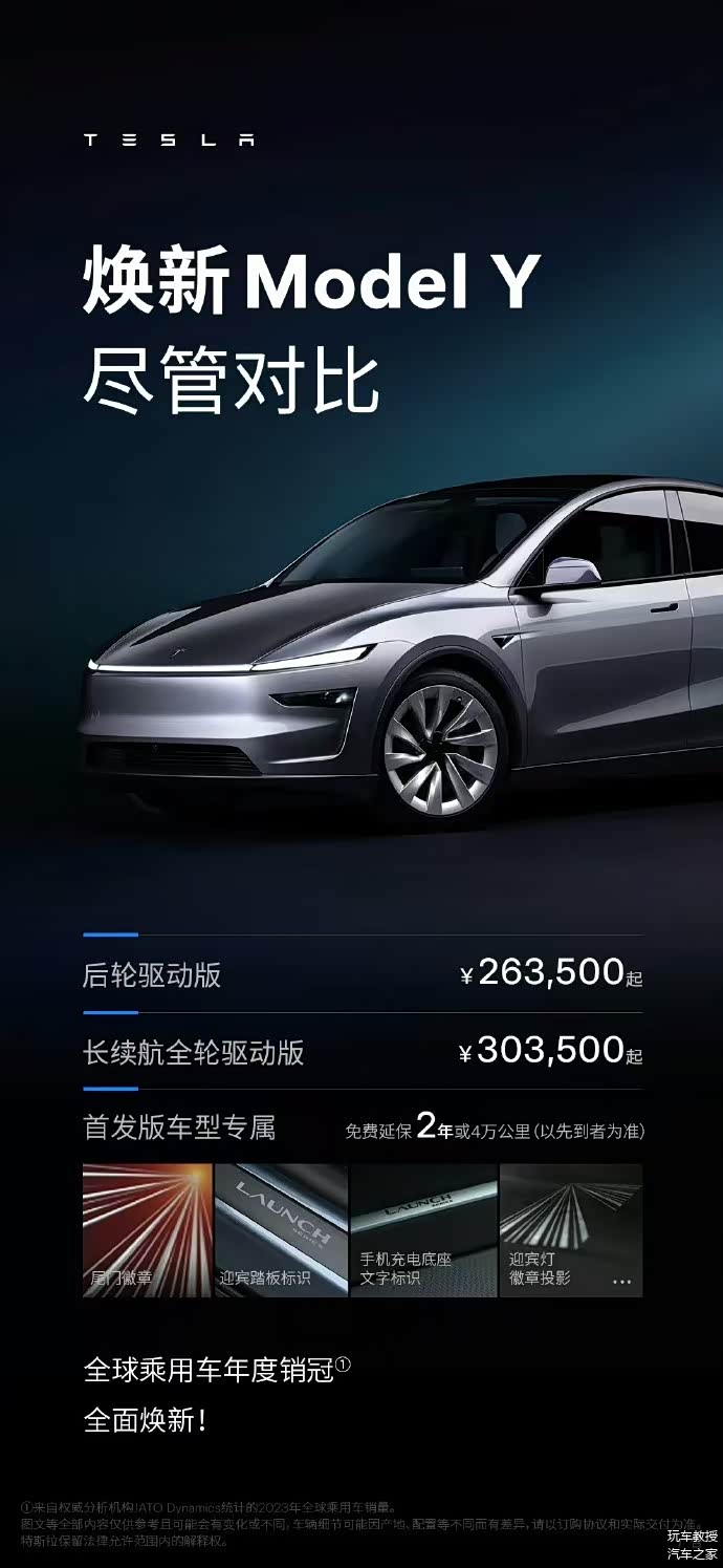 2025年1月10号早上9时许,特斯拉在毫无预兆的前提下突然发布了Model Y焕新版。就像之前的Model 3焕新版一样,Model Y焕新版也可以看作是Model Y车系的重大升级版本。新车共2个版本,后驱版及长续航全轮驱动版,指导价分别为26.35万及30.35万元。