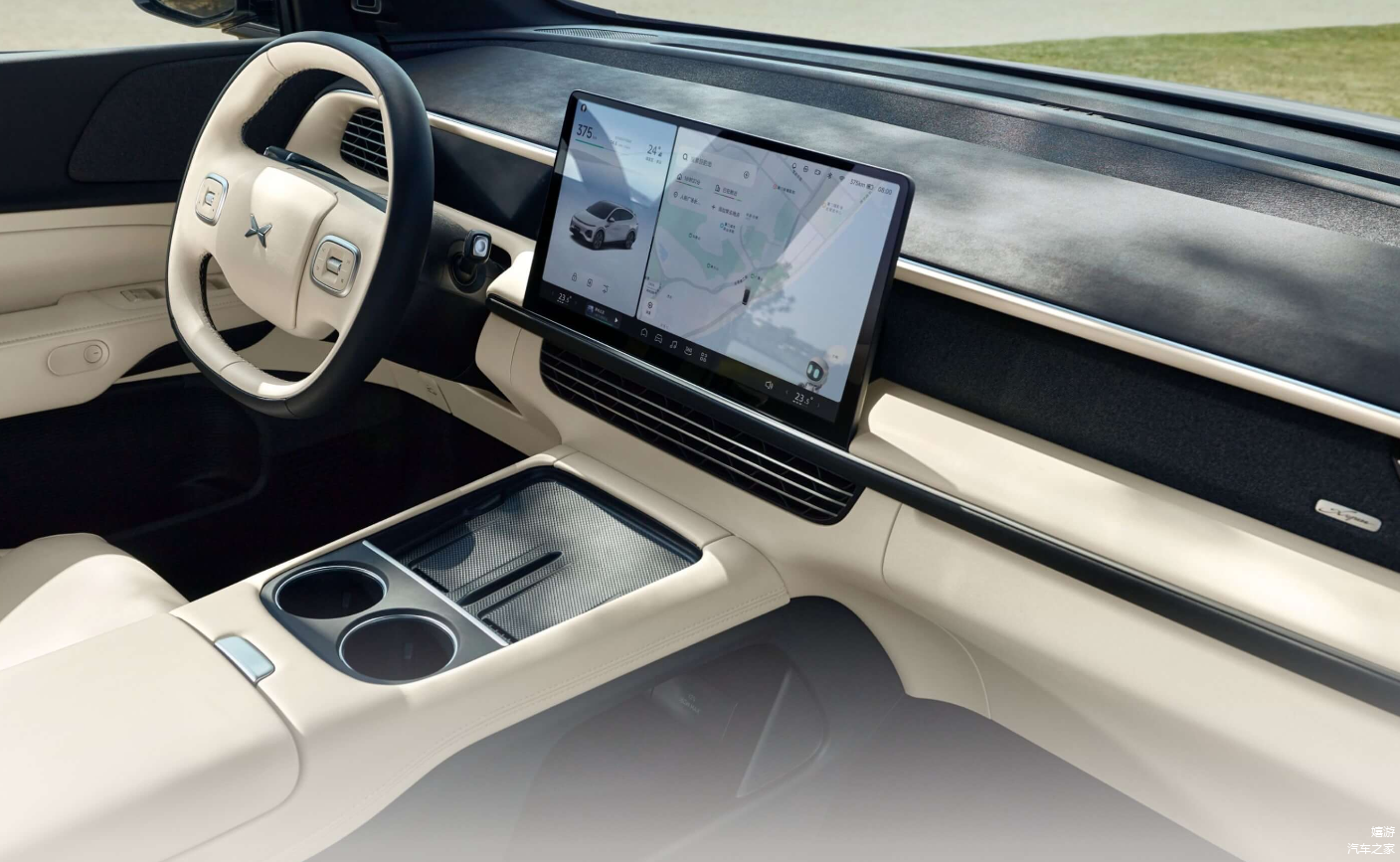 小鹏G6的内饰设计同样注重科技感与实用性的结合。中控台采用大尺寸触控屏幕,搭配简洁的按键布局,使得整个内饰看起来非常清爽。