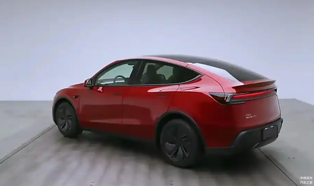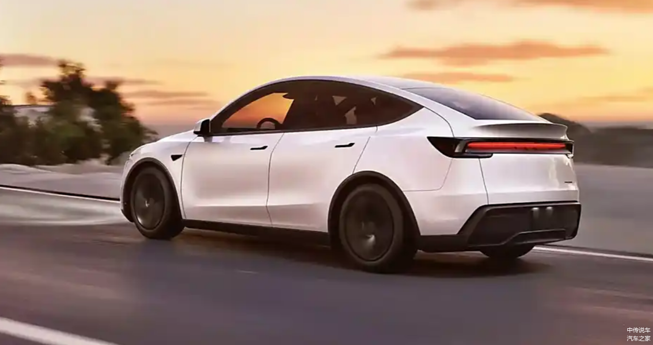 车身侧面,新款Model Y延续了隐蔽式门把手设计,并经过黑化处理,进一步降低了风阻系数至0.22。车身尺寸为4797/1920/1624毫米,轴距为2890毫米,车身长度略有增长,但其他尺寸基本保持不变。尾部设计方面,新款Model Y保留了现有车型的轮廓,小鸭尾式扰流板和贯穿式灯组等经典元素得以延续,同时采用了黑色后包围设计,灯组中心标有品牌英文标志,彰显出特斯拉的独特魅力。