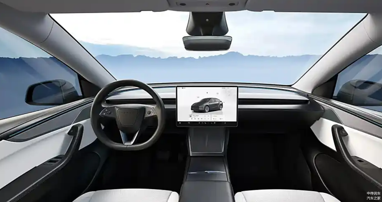 内饰方面,新款Model Y与新款Model 3相似,采用了简洁而富有科技感的设计风格。方向盘设计进行了优化,移除了背后的拨杆,取而代之的是屏幕换挡功能。方向盘左右两侧集成了灯光、转向、雨刷和语音助手等功能,并通过物理按键进行控制,操作更加便捷。此外,新车还配备了AI 4标准硬件,支持OTA远程软件更新,并装有8台摄像头,提升了车辆的智能化水平。