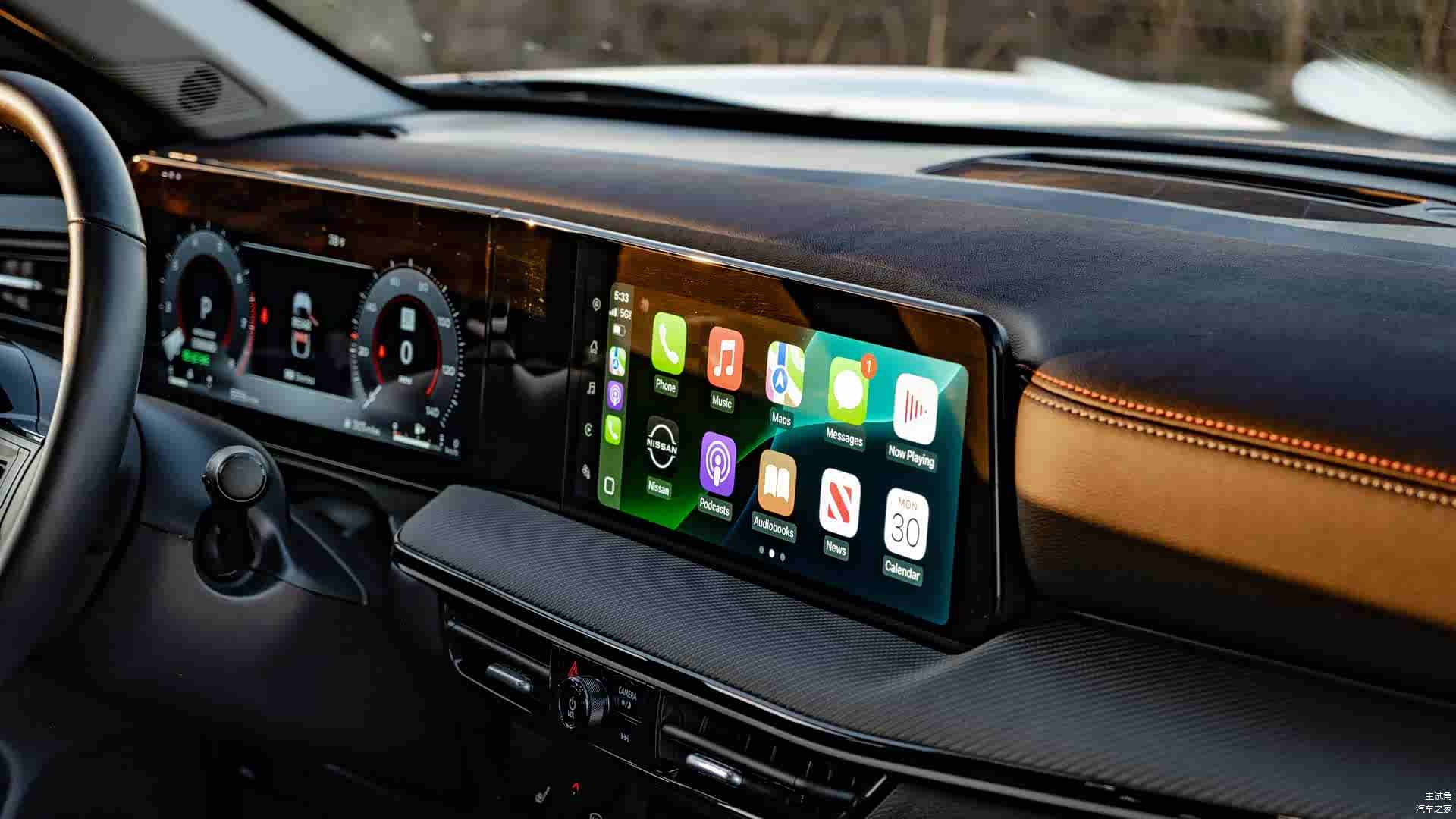 新款劲客内饰设计也紧跟潮流,首先映入眼帘的就是双联屏。不过,只有SR版本为双12.3英寸,向下的SV版本没有液晶仪表屏,但中控屏为12.3英寸;入门版没有液晶仪表盘外,中控屏尺寸也变小至7英寸。说实话,中控屏画质还不错,分辨率很高,并且车机响应速度挺丝滑的,支持苹果无线CarPlay以及安卓无线Auto手机互联。