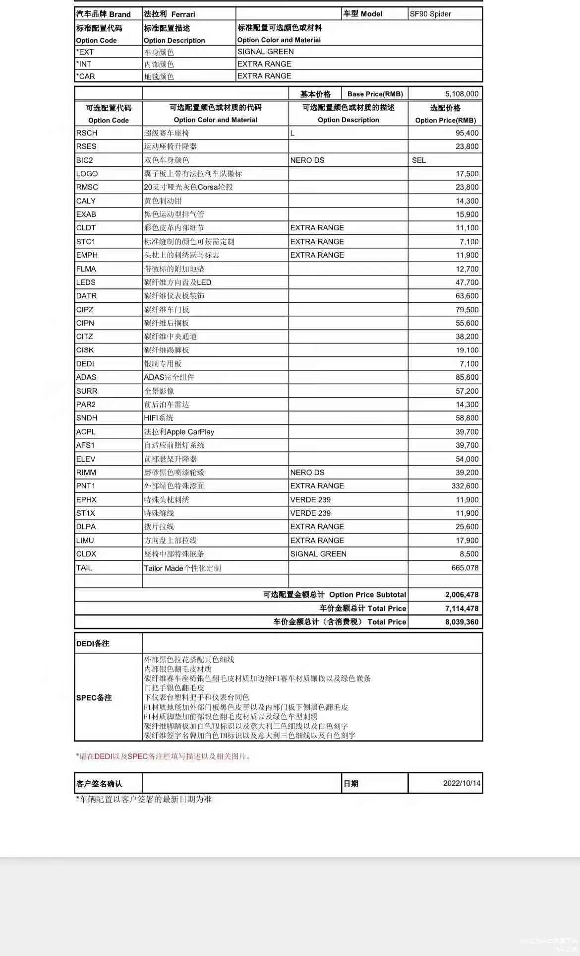 24年一手法拉利SF90敞篷TMD版,绿/白配色,满配:特殊漆面,TMD定制,JBL音响,carplay,全碳套件,赛椅等