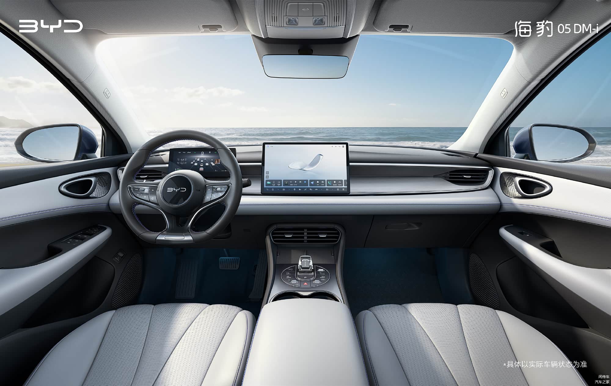 后保险杠部分略带突出,加入了简洁的黑色装饰,让整车的风格形成统一。在内饰部分新车的变化更大一些,采用了海洋网的标准家族风格,双悬浮式液晶屏不会缺席,有着不错的科技感,中控屏幕应该依旧可以转动。平直的中控台面加入了凹陷的特殊面板装饰,连接了空调出风口,气氛灯带贯穿于其中,加上下方突出的皮革缝线工艺覆盖,有一些海豹06GT的视觉效果,只是配置明显低一些,毕竟价格只有不到10万元起,方向盘是鲜明的海洋网络设计,门板装饰也和海豹家族几款高级车型相似,视觉上并没有明显的缩水。