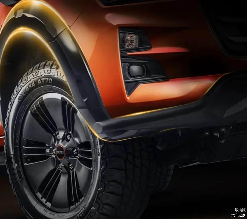 造型方面,D-MAX、铃拓越野版在前包围部分加入了金属护杠,侧身部分则加入机甲风格的踏板和全地形轮胎。其中,D-MAX越野版采用了外扩黑化轮眉和六幅轮辋设计。